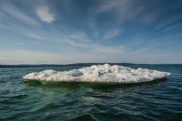 We motored from one pile of ice floating in the Lake to another for about an hour. It felt so good to back on the water, accompanied by the last gasps of our extraordinary winter.